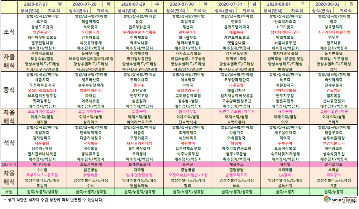 7월27일~8월2일 식단표