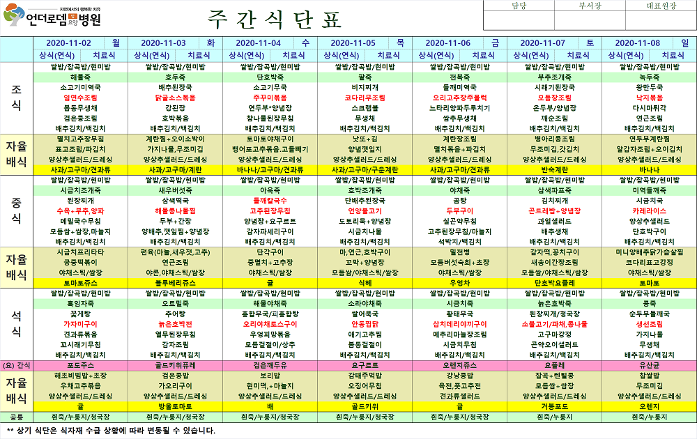 11월2일~11월8일 식단표