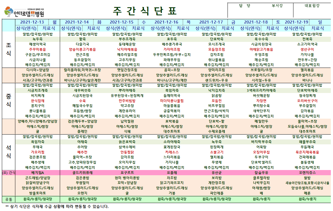 12월 13일~12월 19일 식단표