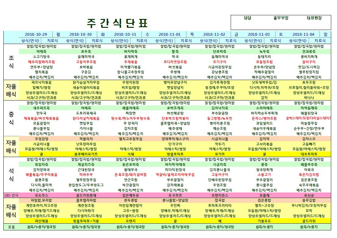 10월29일~11월4일 식단표
