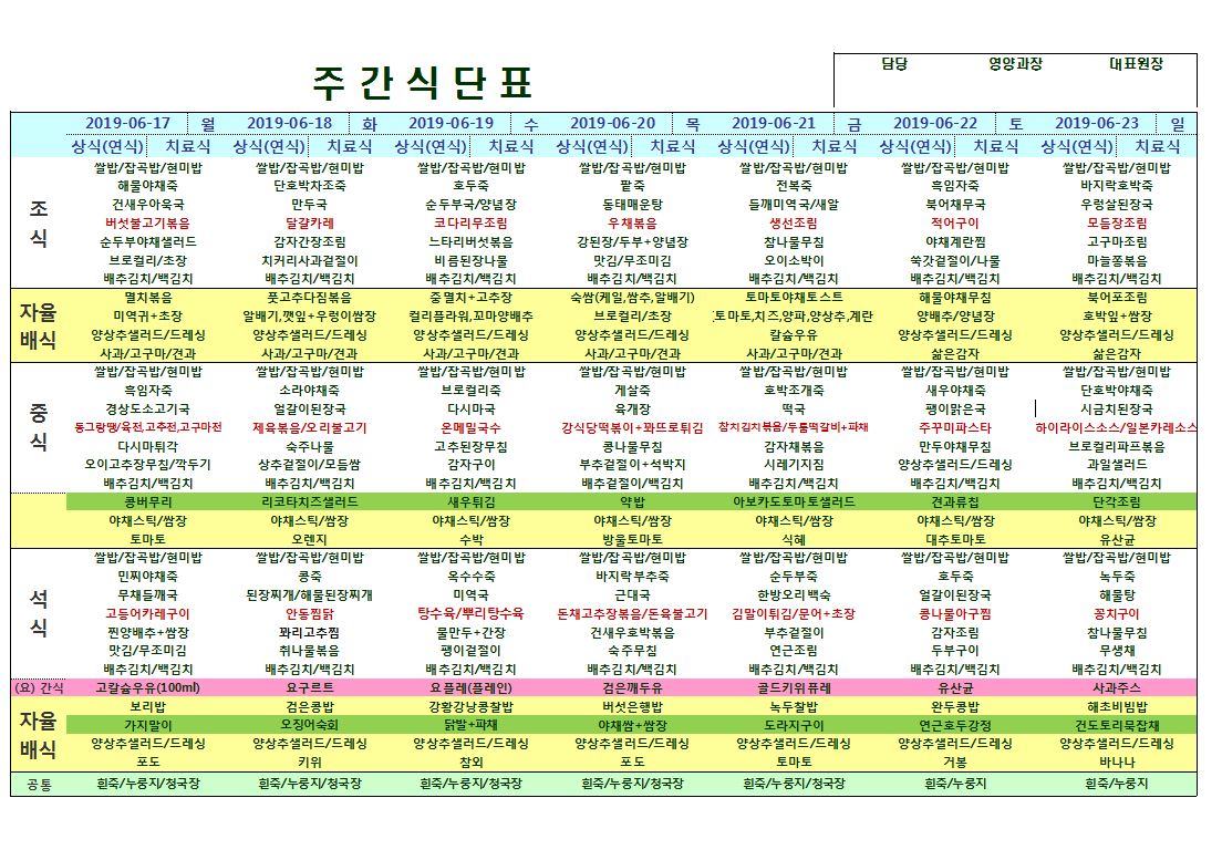 6월17일~6월23일 식단표