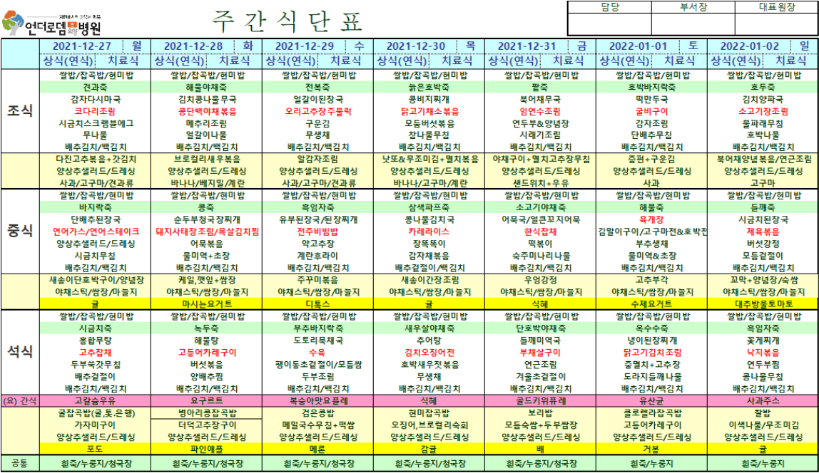 12월 27일~1월 2일 식단표