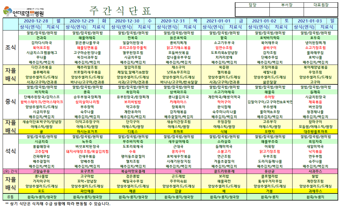 12월28일~1월3일 식단표