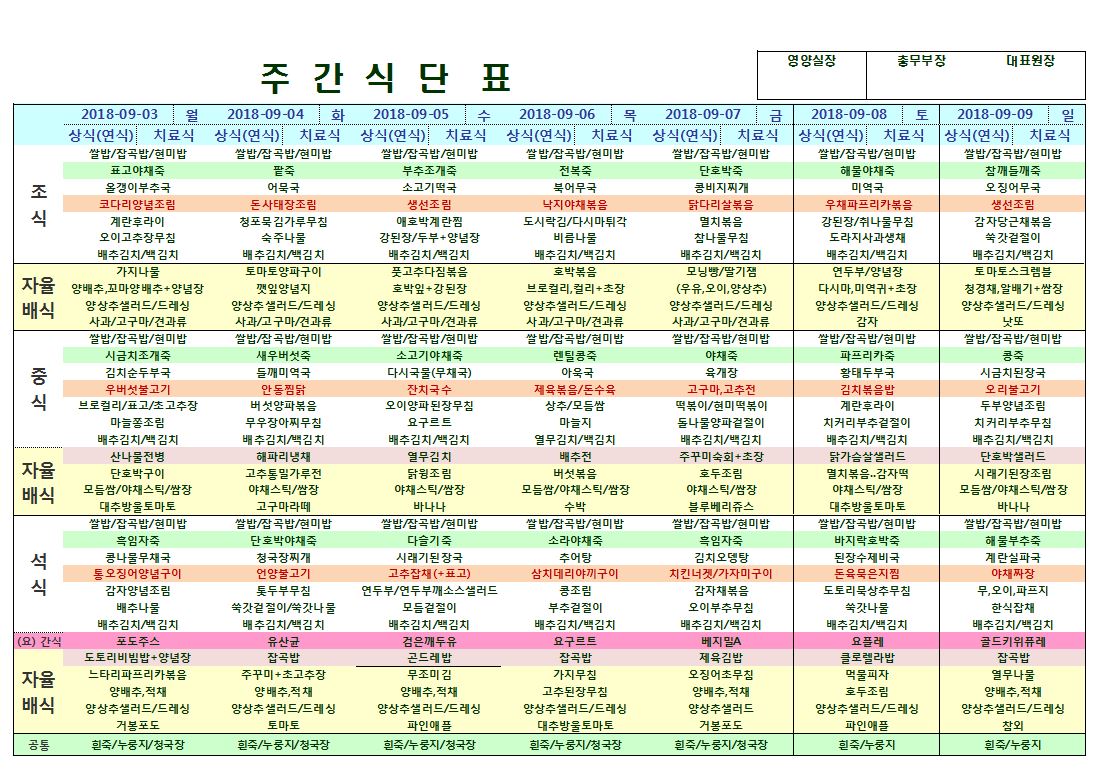 9월3일~9월9일 식단표