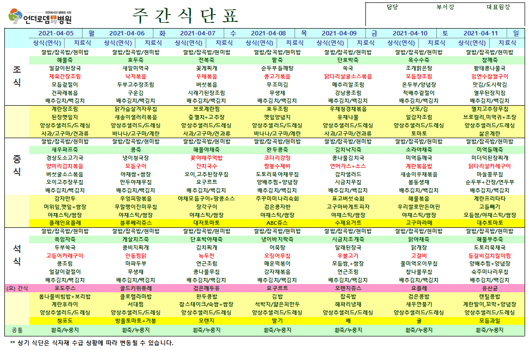 4월5일~4월11일 식단표