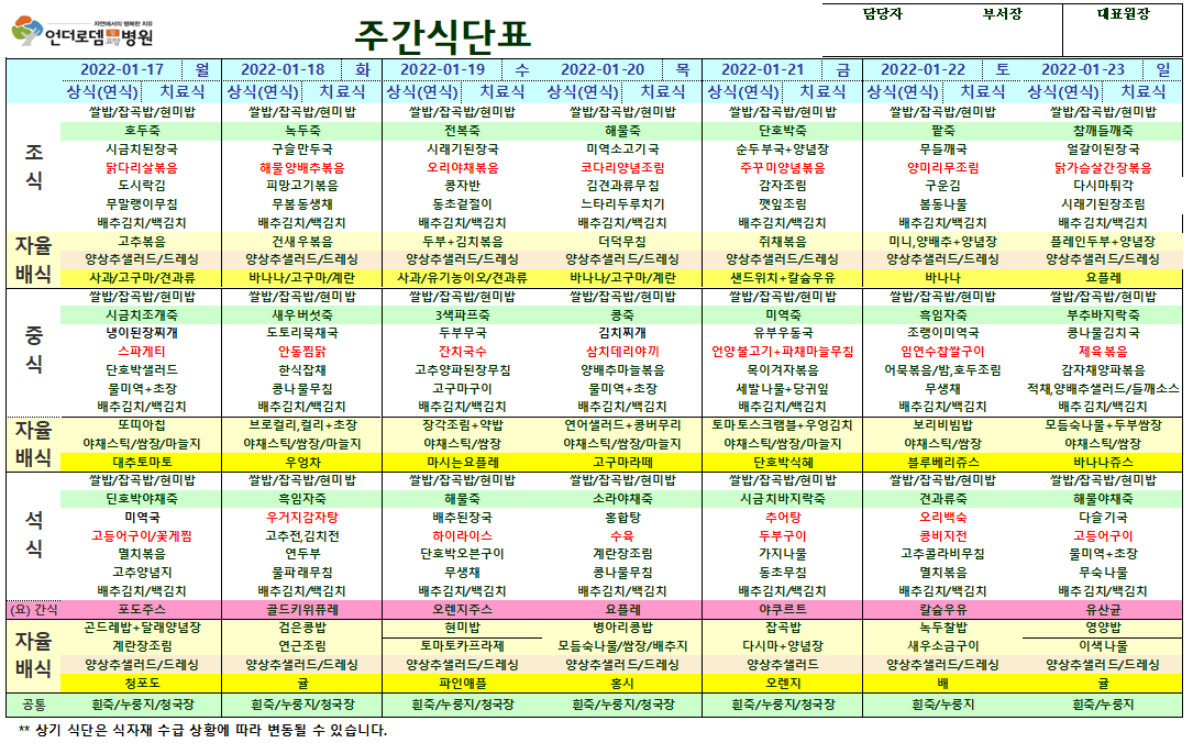 1월 17일~1월 23일 식단표