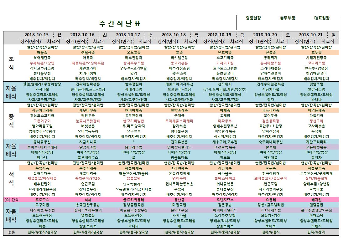 10월15일~10월21일 식단표