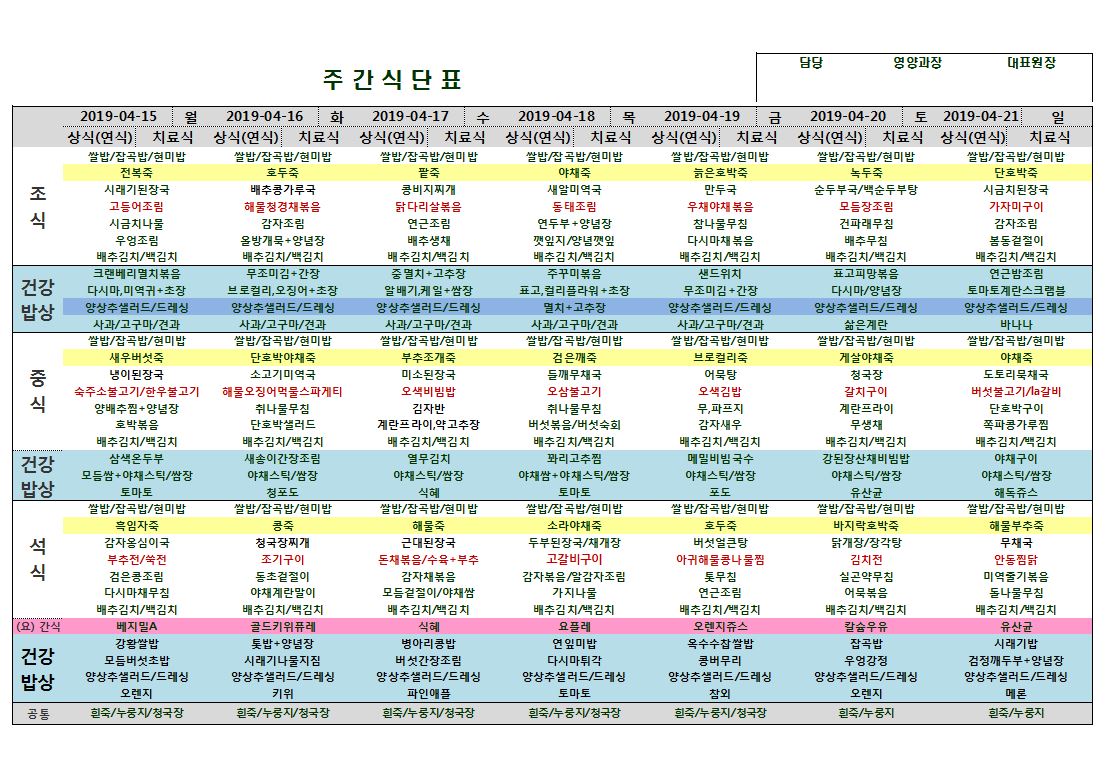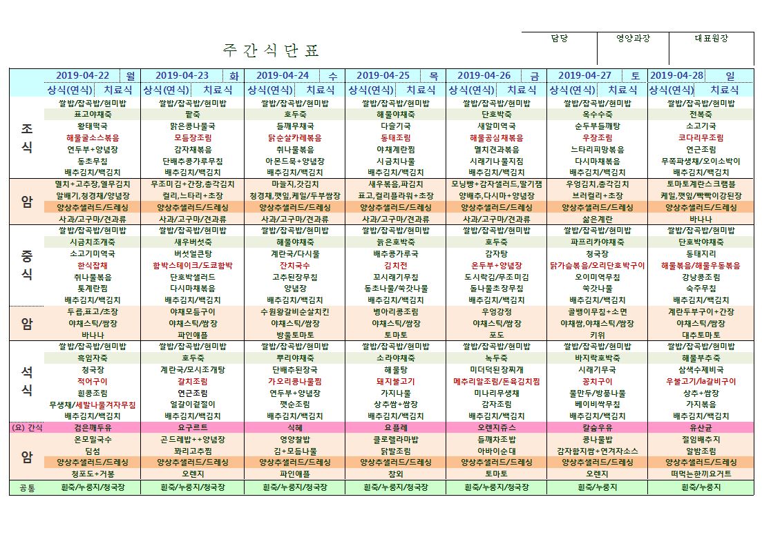 4월22일~4월28일 식단표