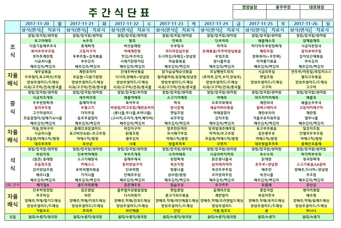 11월20일~11월26일 식단표