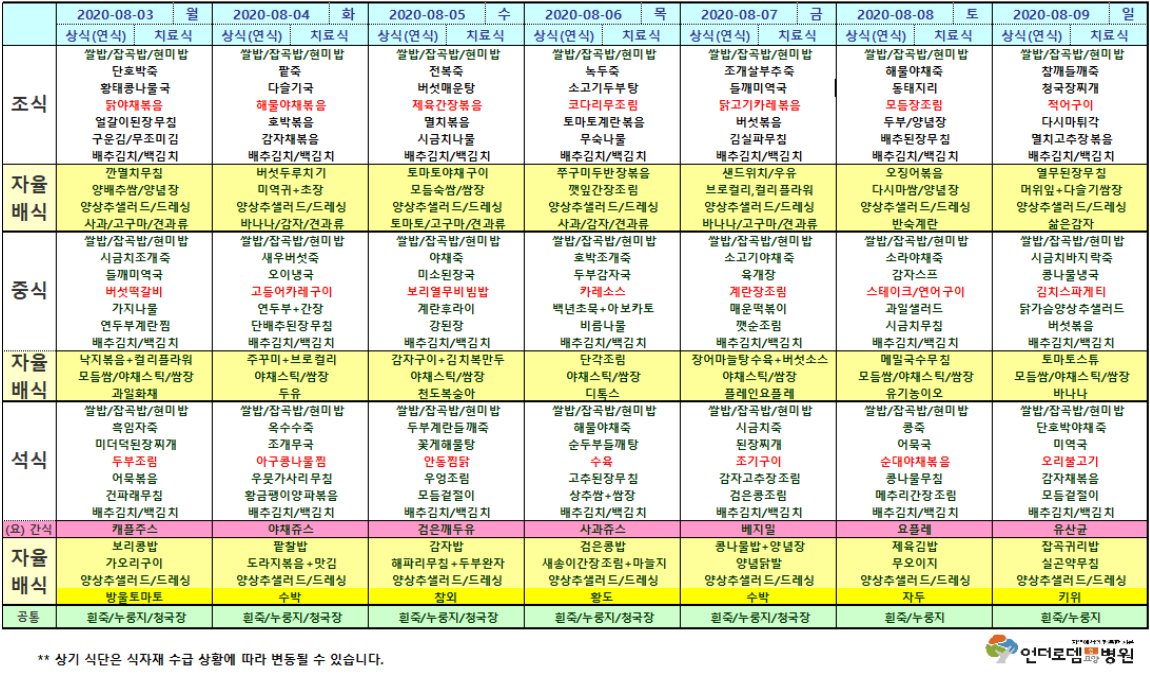 8월03일~8월09일 식단표
