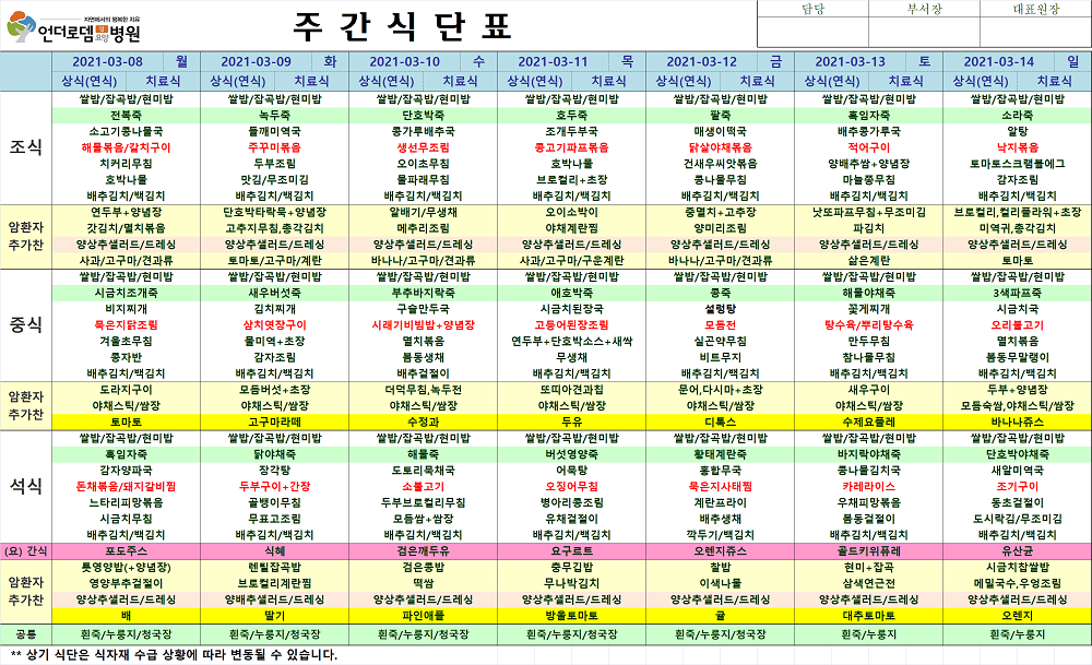 3월8일~3월14일 식단표