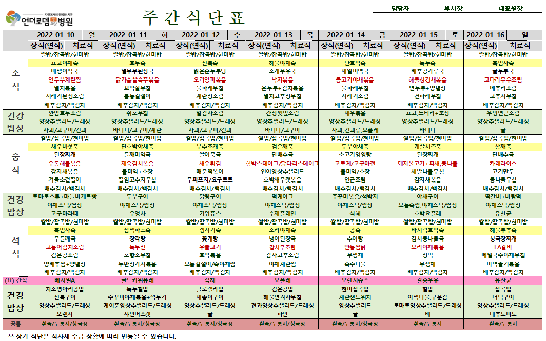 1월 10일~1월 16일 식단표