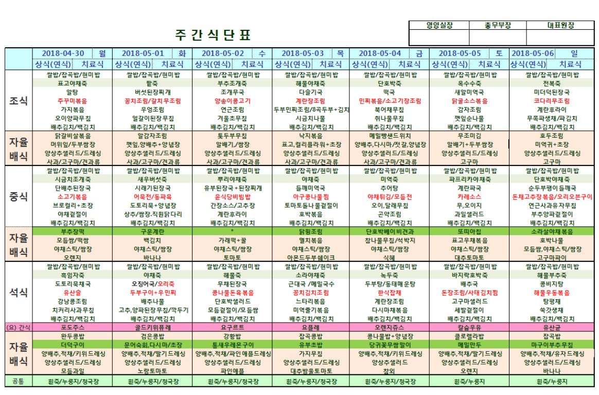 4월30일~5월6일 식단표